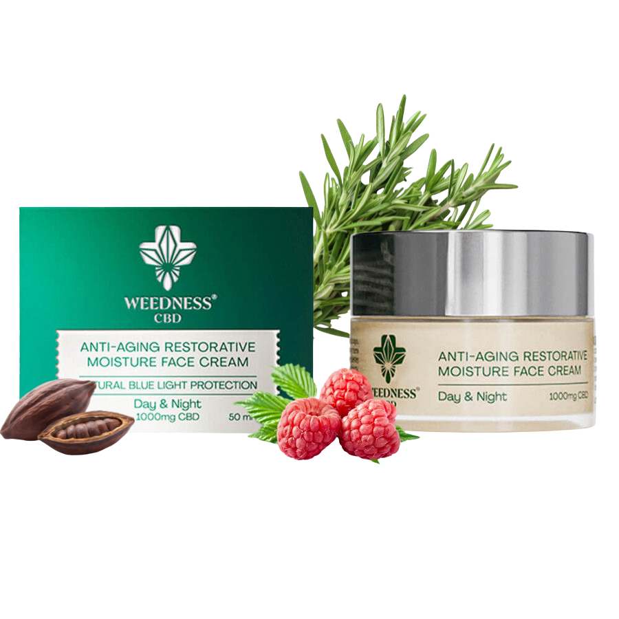 Nuestra Crema Facial Hidratante Restaurativa Antienvejecimiento es la solución definitiva un producto de CBD de alta calidad para el cuidado de la piel. Esta crema está específicamente formulada para proporcionar amplios beneficios reconstituyentes e hidratantes, al tiempo que trata los signos del envejecimiento ,está repleto de potentes ingredientes naturales que actúan sinérgicamente para nutrir y proteger la piel. La fórmula incluye aceite de rosa, ácido hialurónico de origen vegetal, coenzima Q10 y extracto de uva, todos ellos cuidadosamente seleccionados por sus propiedades antienvejecimiento y su capacidad para revitalizar la piel